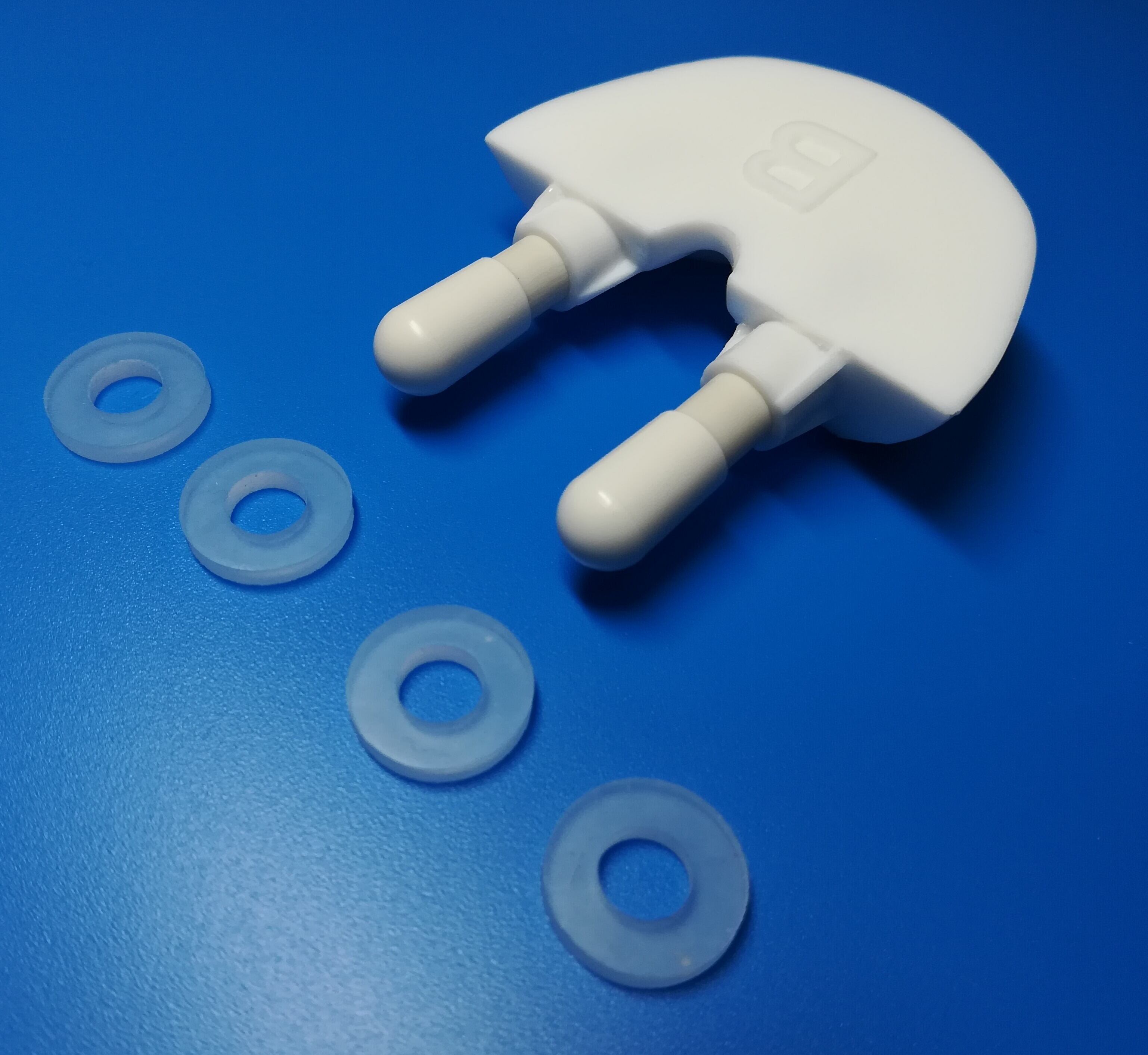 商品はキット本体とシリコンリング4個、円形両面テープ4枚(アイ2ペア分)付属。
