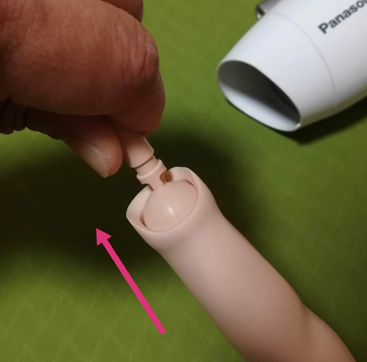 男子スマートドール(星雲永時、クリムゾン)着替える際、上腕を一旦外して再装着時やりにくい課題に対す解決策としての”男子上腕押進補助キット”です。通称”ハンマーキット”。
