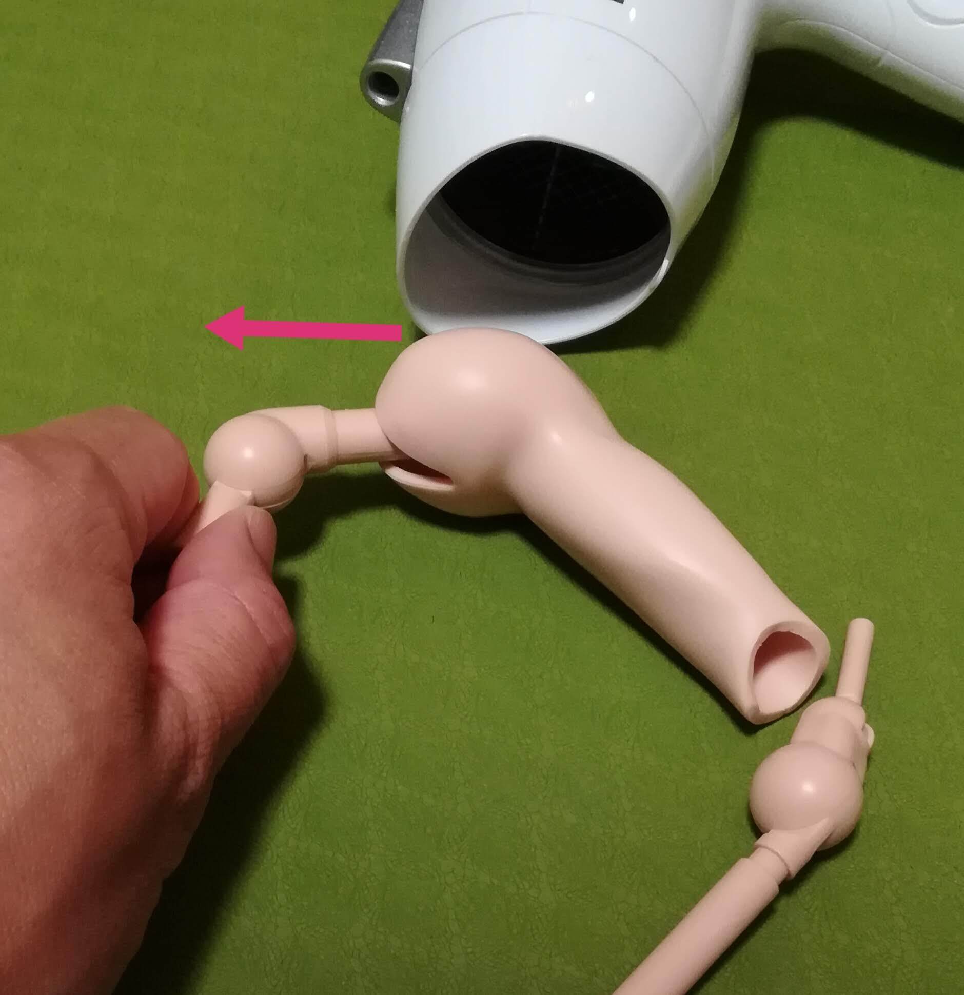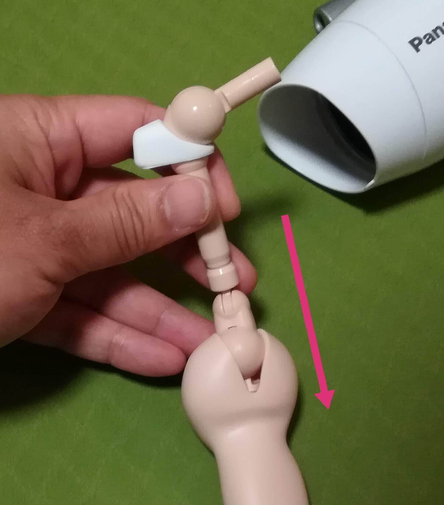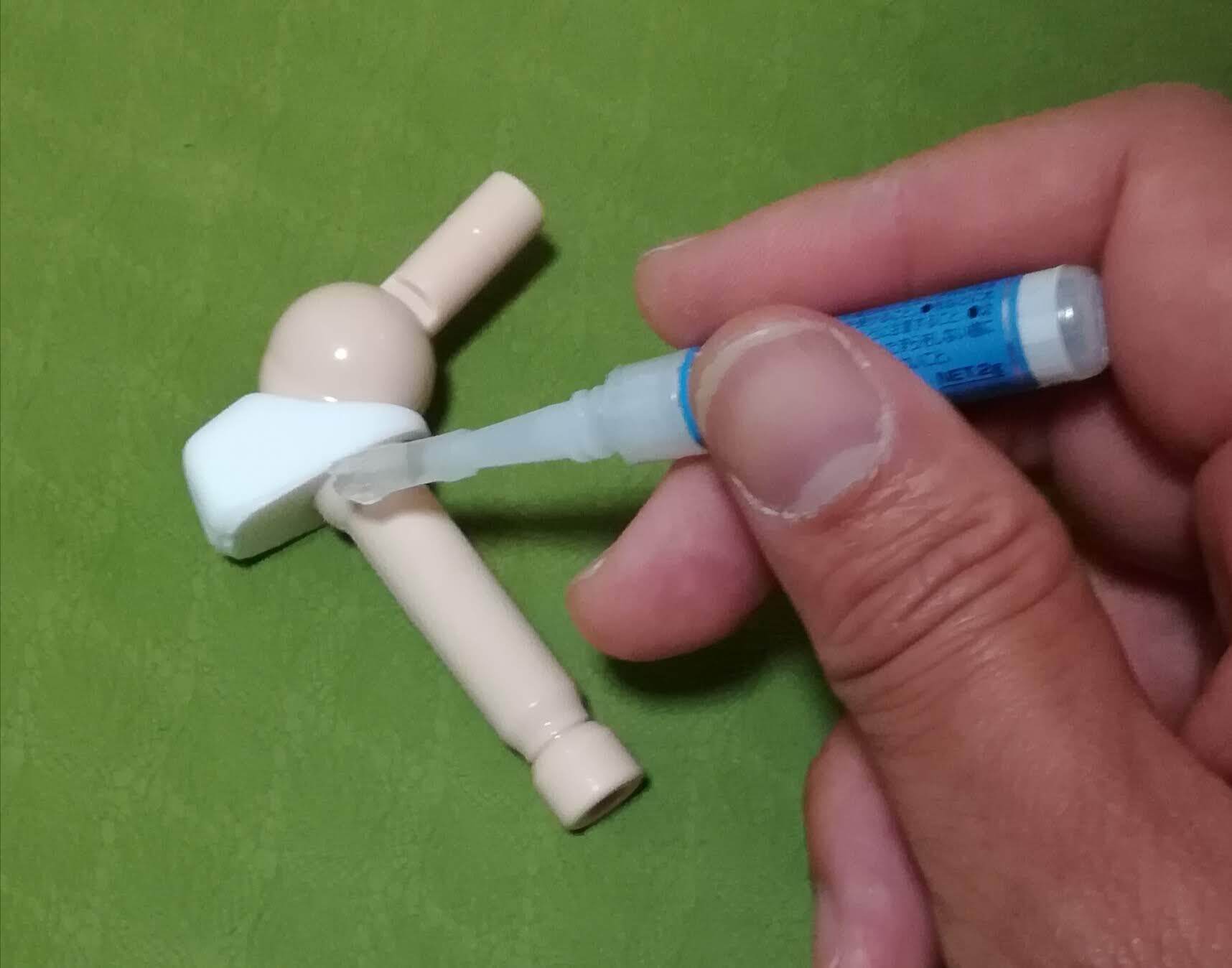 レジンパーツを上腕フレームに接着するだけで、着替え作業は楽になります。